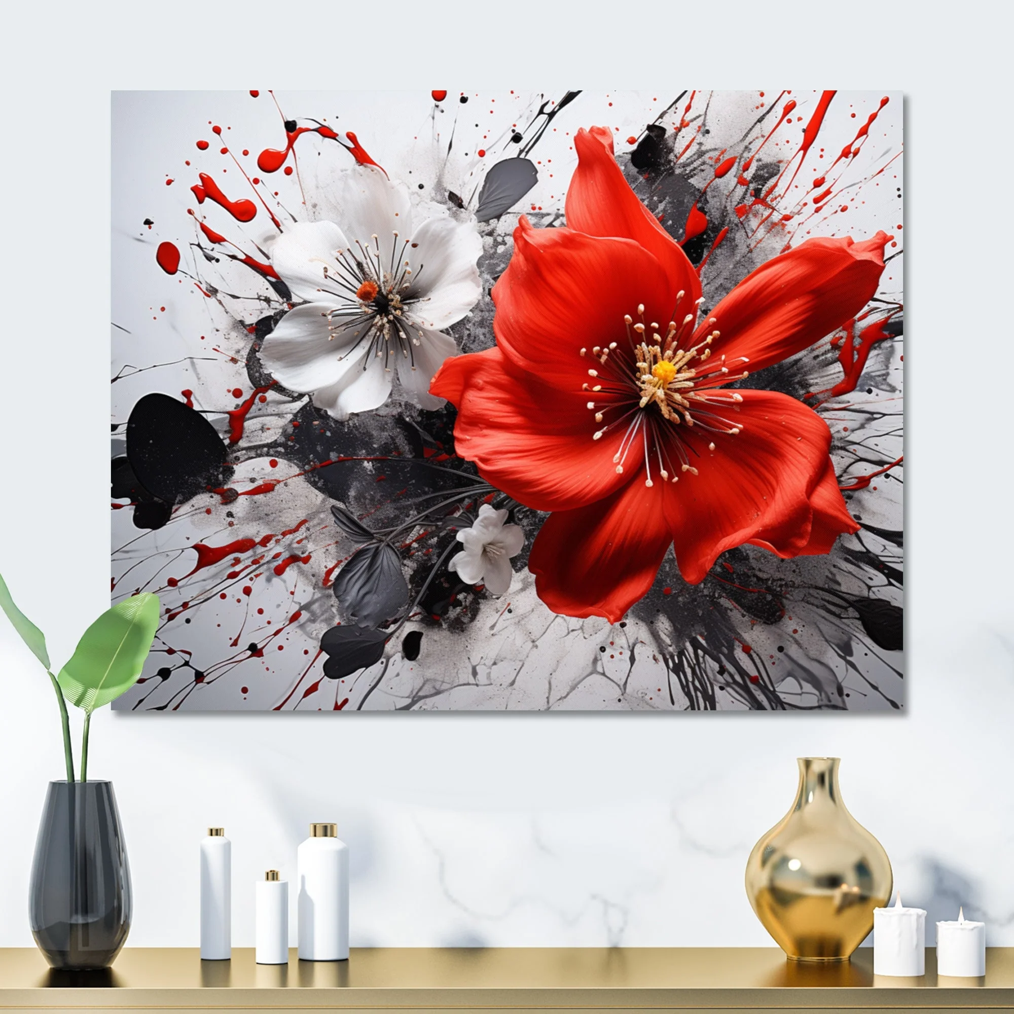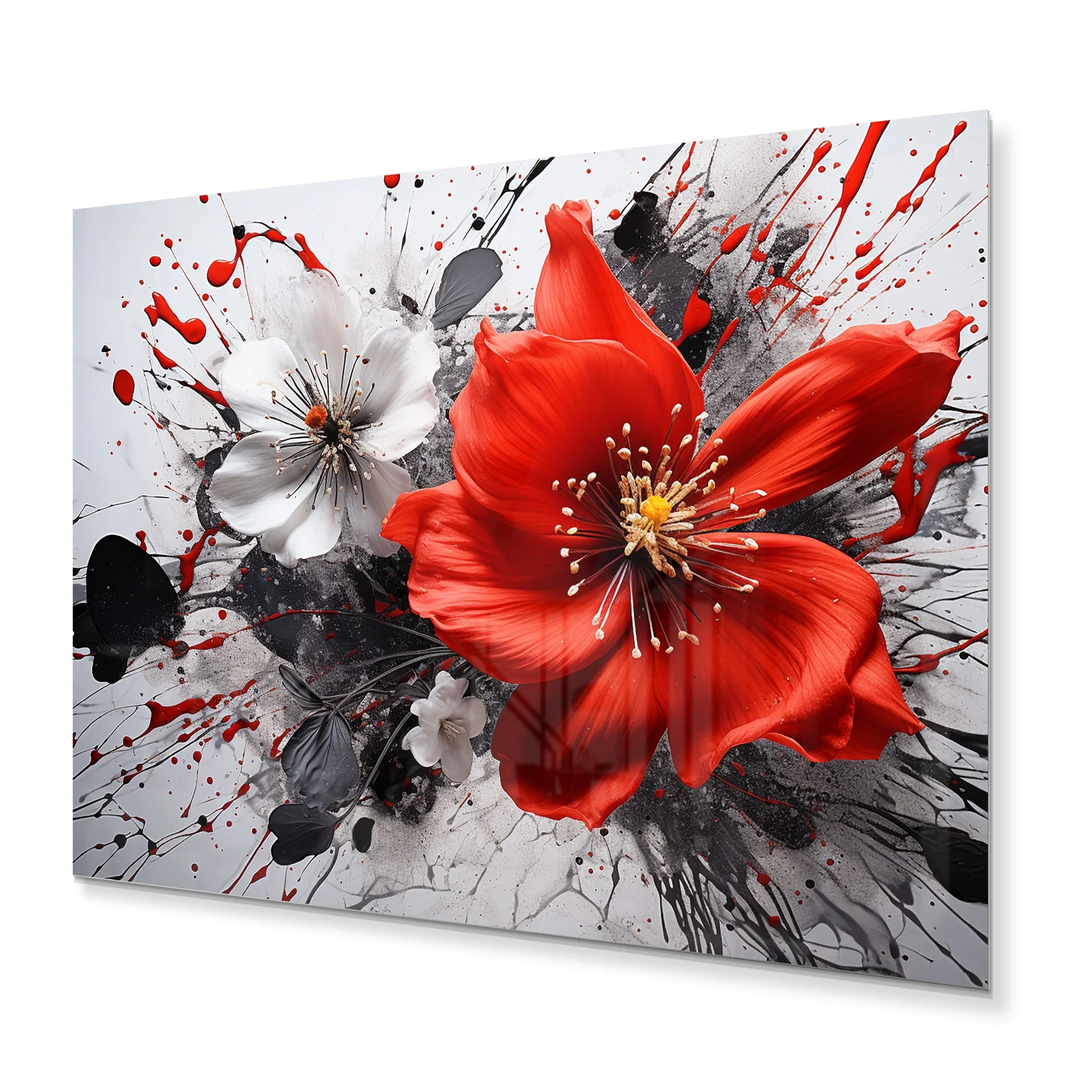 "Red Grey Botanical Symphony I" Abstract Botanicals Metal Wall Art Prints