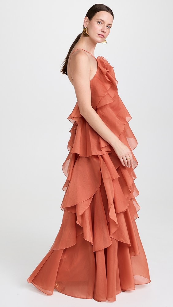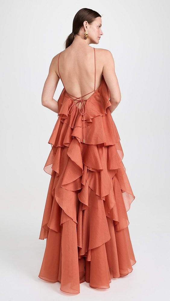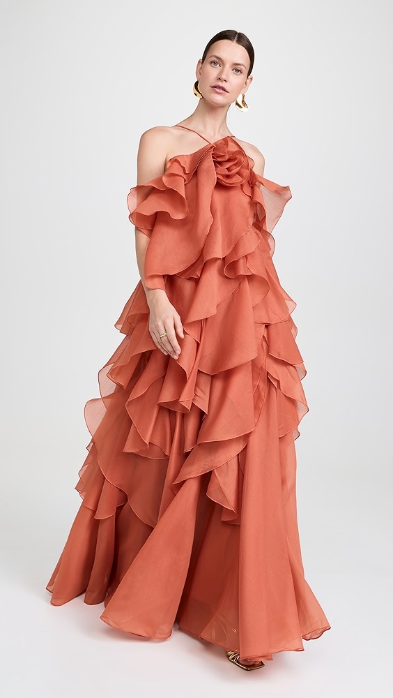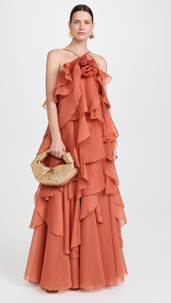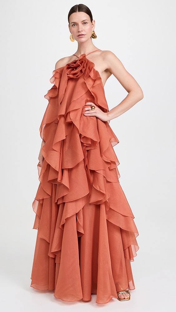 Halter neck irregular ruffle maxi dress